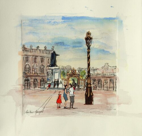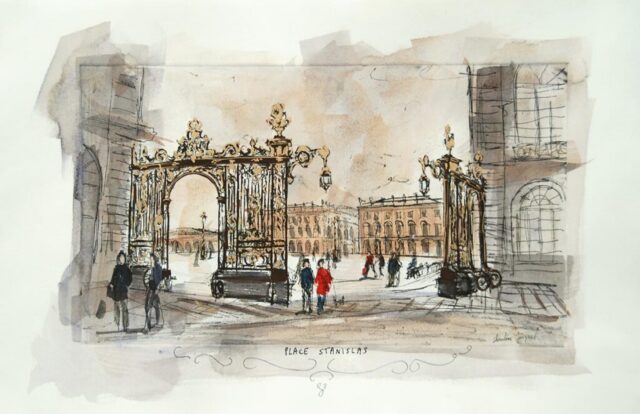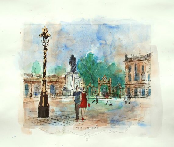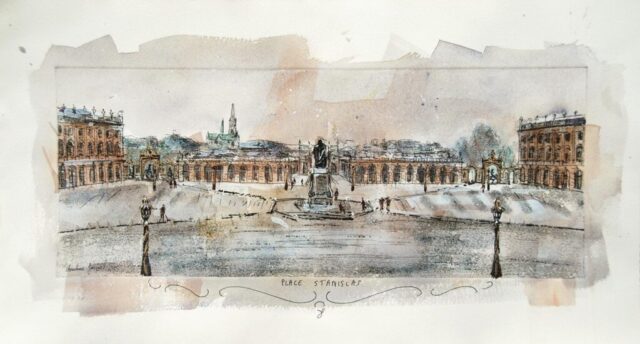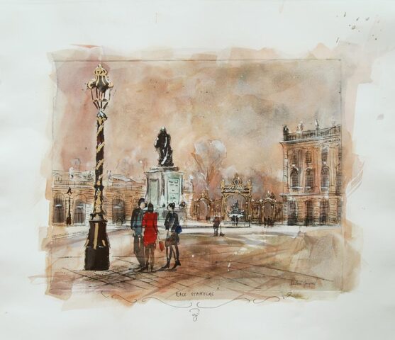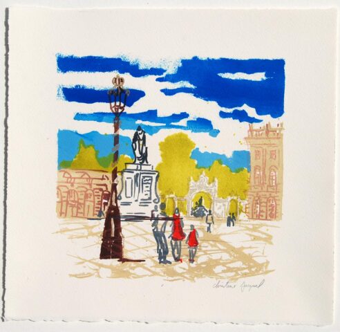 La place Stanislas est un de mes sujets de prédilection. Je l’ai travaillé dans toutes sortes de techniques, aquarelle, peinture à l’huile, estampe, technique mixte…En voici quelques représentations.